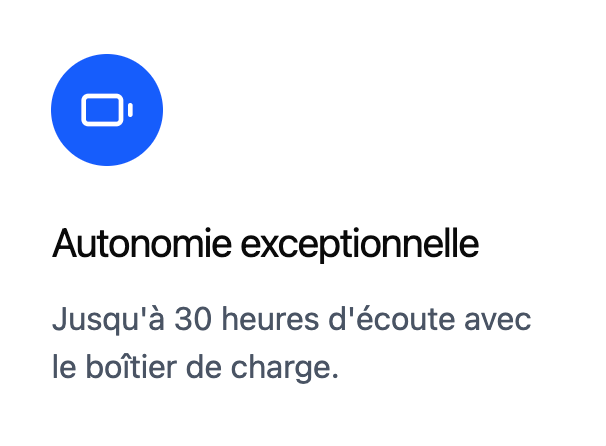 Les AirPods offrent jusqu’à 6 heures d’écoute selon le modèle, et jusqu’à 24 heures avec le boîtier de recharge.